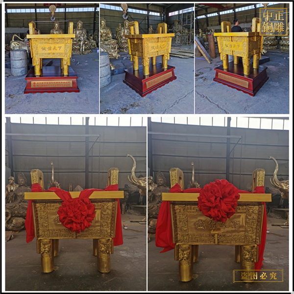 中正銅雕-鑄造1.5米銅鼎、鑄造1.5米銅鼎價(jià)格、鑄造1.5米銅鼎廠家,我公司集科研、開發(fā)設(shè)計(jì)、普通鑄造、一次性整體澆鑄、精密鑄造于一體。本公司技術(shù)力量雄厚,設(shè)備,不但重視中國(guó)青銅器原有的藝術(shù)風(fēng)格,還繼承了文物原有的藝術(shù)品味,在繼承和發(fā)揚(yáng)古老文化的同時(shí),更深一步為新老客戶定身量制各種銅制、鐵制工藝品等產(chǎn)品,曾多次受到寺廟長(zhǎng)老和美術(shù)學(xué)院教授的好評(píng)。