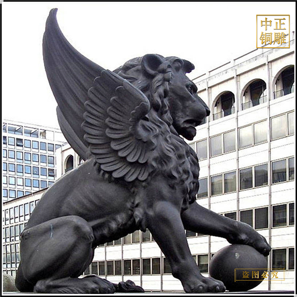 帶翅膀的銅獅子雕塑