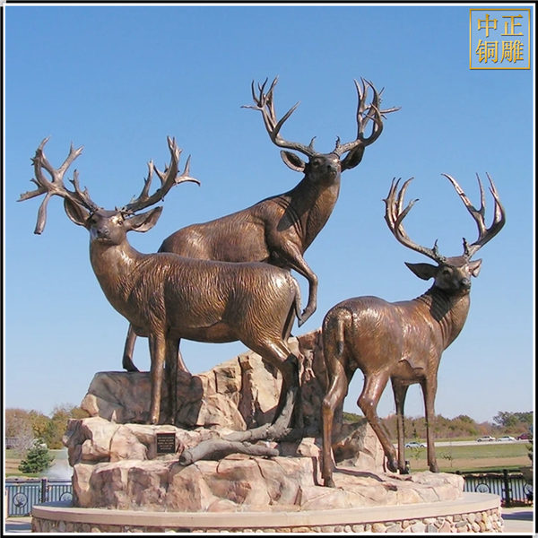 中正銅雕-三只鹿鑄銅雕塑、三只鹿鑄銅雕塑價格、三只鹿鑄銅雕塑廠家,我公司集科研、開發設計、普通鑄造、一次性整體澆鑄、精密鑄造于一體。本公司技術力量雄厚,設備,不但重視中國青銅器原有的藝術風格,還繼承了文物原有的藝術品味,在繼承和發揚古老文化的同時,更深一步為新老客戶定身量制各種銅制、鐵制工藝品等產品,曾多次受到寺廟長老和美術學院教授的好評。