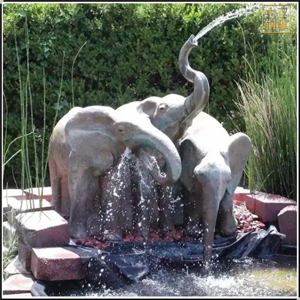 銅大象玩水景觀雕塑