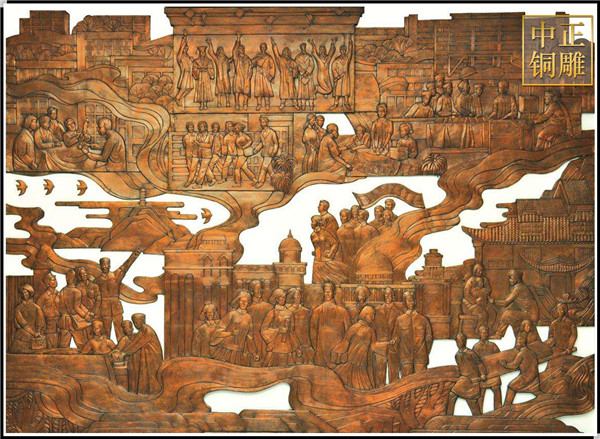 銅浮雕不僅是中國古文化藝術,銅浮雕還是浮雕廠代表性文化產業引進歐洲先進技術和工藝,銅浮雕有不銹蝕,不脫色的優勢,經過多道工序精制而成,在內容和形式上與地方特色文化緊密結合,銅浮雕選材貼近現實生活,是民間的藝術精靈,他展現著人們的思想和審美,我們日常看到的浮雕又分紅銅浮雕、紫銅浮雕、黃銅浮雕、鍛銅浮雕,它們分別又是什么呢?銅浮雕廠家帶你認識一下。