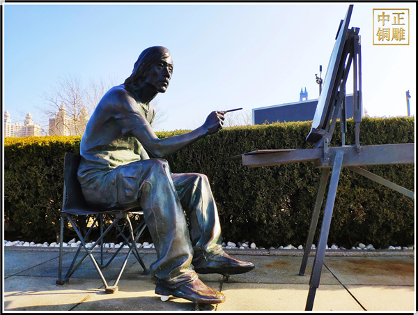 2、藝術感和可觀性:人物雕塑除了在人物的面部和細節刻畫上非常精細以外,還把素繪、著色等藝術手段,巧妙的運用到雕塑的制作中,從而具有現代藝術感,也提高了觀賞價值。