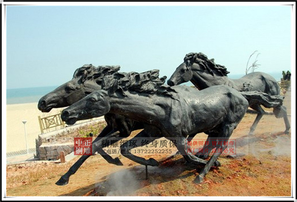 馬具有強健不息的氣數,在風水上并不會把馬分為吉獸或兇獸,是因為在風水中的氣數無法輕易掌握與控制,但是有很多人還是把銅馬作為封官晉爵的吉獸。千里馬是日行千里的優秀駿馬。而雕刻出的馬,雄壯無比,力大無窮,追月逐日,披星跨斗,乘風御雨,不舍晝夜。這正是中華民族戰天斗地,征服自然的生動寫照,是炎黃子孫克服困難,永遠前進,是中國人民不畏艱險,樂觀向上的生命意義的反映。所以銅馬一般擺放在企業門口既有拼搏向上的精神,也有招賢納才的寓意!