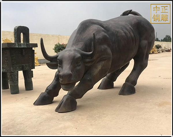 美國華爾街紐約證券交易所門前便有一只“旺市銅牛”,是重金邀請著名塑大師及鑄造大家以5噸青銅精心澆鑄而成。此牛形體健壯,磅礴,人們以此牛來喻意證券行情的“牛市”發展,也是人們看好“牛市”的一種心理意識,表達對證券、全球金融、貿易、工商人士的祝福,希望他們牛氣相隨、事業發達,如今被更多人引伸為“幸運牛”。