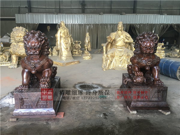 獅子:瑞獸一種,百獸之王,勇不可擋,威震四方,不但可以避邪,且可帶來祥瑞之氣,能解除多種形煞,亦加強(qiáng)官威或屋主之陽氣,如果窗口見到不利之沖克,可放一對(duì)石獅面向口可化煞,且有生權(quán)之意。凡是以口維生之行業(yè),如律師、藝員等,可在辦公室內(nèi)擺放一對(duì)聲威,有助于生財(cái)。中正銅雕-故宮銅獅子,故宮銅獅子雕塑,大型故宮銅獅子,我公司實(shí)行現(xiàn)代化企業(yè)管理,成功導(dǎo)入TPS生產(chǎn)管理系統(tǒng),形成集塑制泥塑模型、泥稿后翻制模具、翻制石膏模型、工藝師加工制作、營銷為一體化作業(yè)的生產(chǎn)線,加上先進(jìn)的銅雕加工設(shè)備,優(yōu)秀的美術(shù)設(shè)計(jì)師,雕刻經(jīng)驗(yàn)豐富的制作人員, 造型精美,精雕細(xì)琢,深受客戶的好評(píng)。